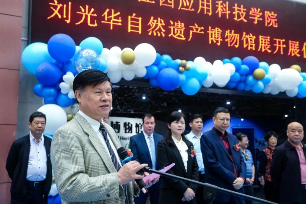 中国自然科学博物馆学会副理事长贾跃明在仪式上发表贺词。他表示,这个博物馆体现出从“私家珍藏”到“社会共享"的文化自觉和志趣升华,很好诠释了刘光华博士初心坚守与匠心传承的人格特质和人文精神。刘光华自然遗产博物馆的建成开馆,不仅为江西应科院厚植教研的底蕴和亮色,增添又一张极有份量的名片和品牌,而且为江西人民打造了深受欢迎与关注的地质学科普殿堂和研学基地。